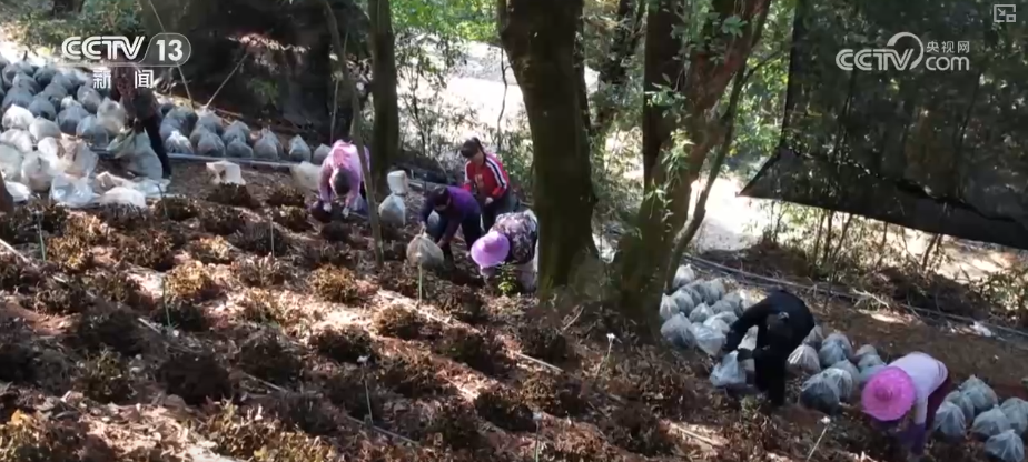 福建漳州南靖县龙山镇东爱村的阔叶林下,村民们正在移栽珍贵的金线莲,这片浓密的树荫是金线莲理想的“天然厂房”。